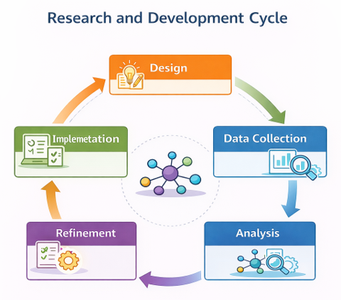 COGIT Lab is being developed through an iterative research process that includes design, implementation, data collection, analysis, and refinement. Each cycle helps improve both the platform and the underlying COGIT™ Framework while generating insights about how reasoning develops in real learning environments.