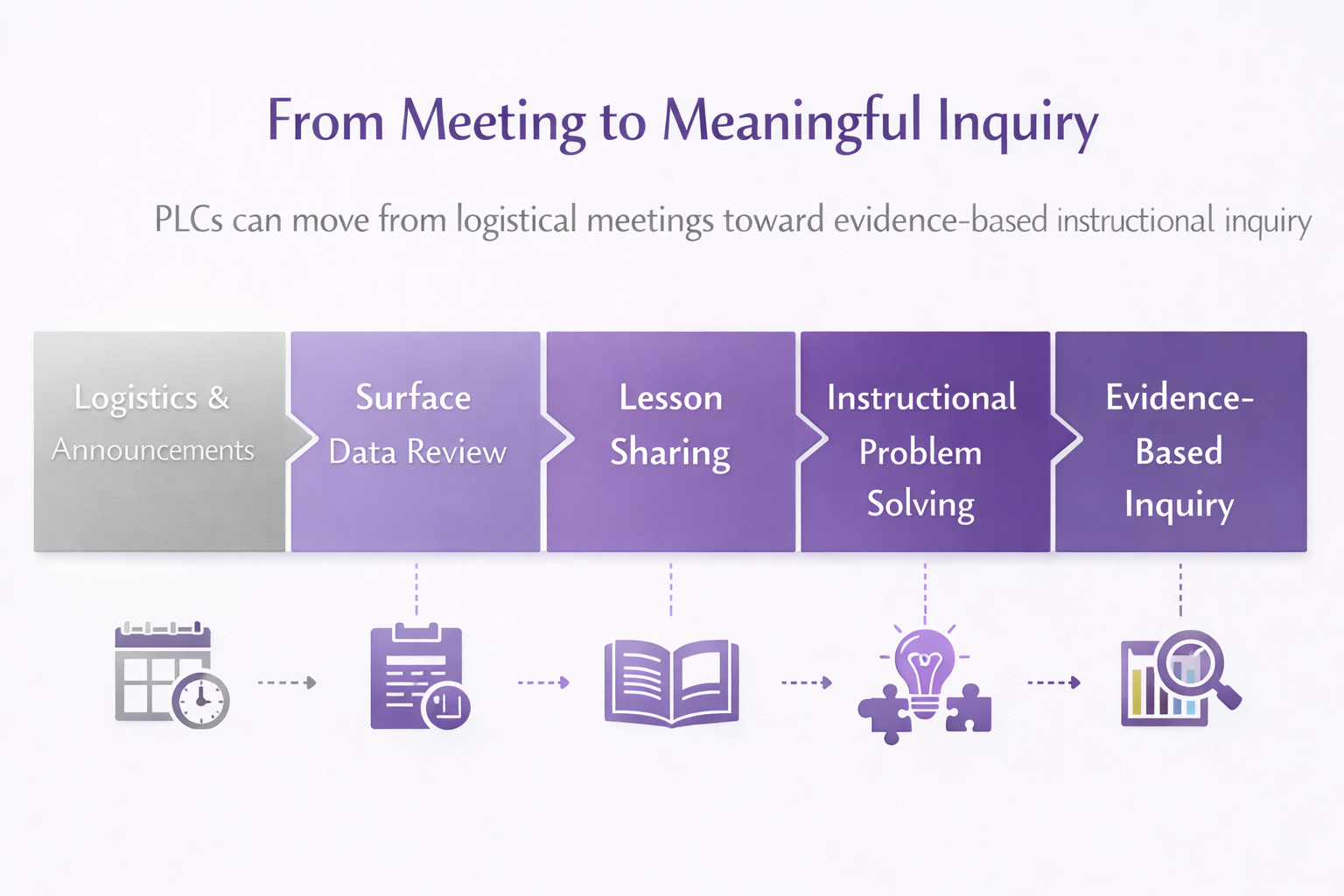 In many schools, PLC time is protected but not always fully leveraged. Meetings may focus on announcements, scheduling questions, or general discussion rather than the deeper instructional work they were intended to support.